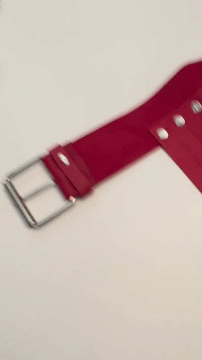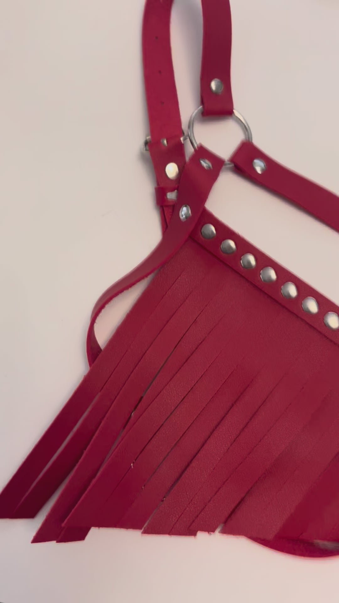 Turn heads, raise temperatures, and take control with our unapologetically seductive Red Flag bondage set. Featuring matt red PU leather, silver-tone studs, and fringed details, this two-piece harness set delivers serious visual drama without compromising on comfort.